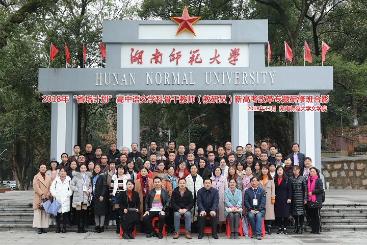 开班仪式之前,全体人员观看了湖南师大八十周年校庆宣传片并合影留念。此次研修班将在公司学习九天,期间将赴湖南师大附属中学、长沙市一中、长沙市明德中学访学交流。来自全省14个地州市的70名高中语文骨干教师(教研员)参加研修班学习。