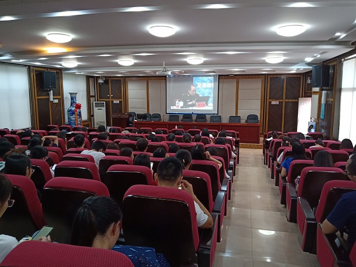 3:30,全体师生党员集中在216、217教室收看金一南主题讲座——《不忘初心,牢记使命》。