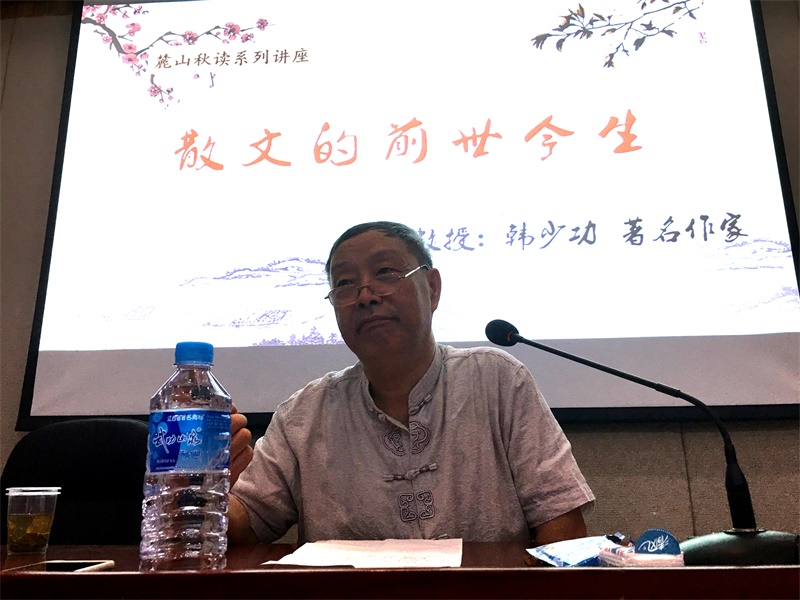 (通讯员 张明 樊婧)9月27日上午,beat365手机版官网入口“麓山秋读系列讲座”第四场在216教室举行。著有《爸爸爸》、《马桥词典》、《山南水北》等作品的著名作家、beat365手机版官网入口讲座教授韩少功,做客beat365手机版官网入口,进行了主题为“散文的前世今生”的讲座。beat365手机版官网入口教授李作霖主持讲座。