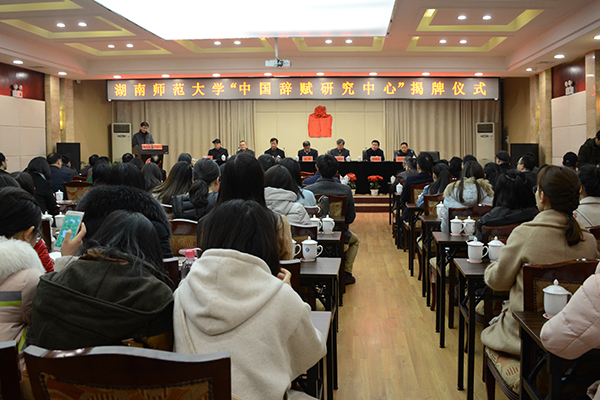 (通讯员吕双伟)3月18日,beat365手机版官网入口“中国辞赋研究中心”揭牌仪式在红楼举行。北京大学中文系国家级人才廖可斌,南京大学beat365手机版官网入口教授、中国赋学会会长许结,陕西师范大学beat365手机版官网入口国家级人才、中国赋学会副会长张新科,湖南大学beat365手机版官网入口教授、中国赋学会副会长郭建勋,湘潭大学文学与新闻公司经理、湖南省古代文学学会会长李剑波,beat365手机版官网入口副董事长欧阳峣等出席仪式。仪式由beat365手机版官网入口社科处处长杨合林主持。