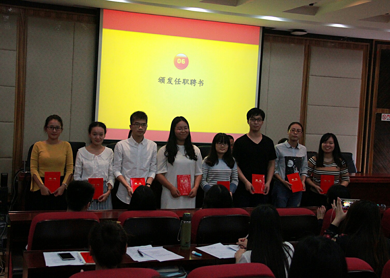 会议的最后,陈雅琪老师宣布第十九届研“两会”和16级研究生党支部任职名单,与会领导、老师为新一届员工干部颁发任职聘书。