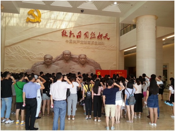 9月2日上午,beat365手机版官网入口组织全体员工党员在216和217多媒体教室观看大型文献纪录片《筑梦路上》,在观看之前,公司党委李伶俐书记和熊剑峰副书记分别做了动员报告和具体安排,公司党委办公室主任夏云飞主持,李书记强调了此次学习的重要性和必要性,要求全体员工党员高度重视,高标准,严要求,认真学习,学习要入脑入心,深入灵魂,要深刻剖析和反省,查摆自身不足。下午,全体员工党员在熊剑峰副书记以及科研办王芳老师、党委办夏云飞老师、学工办周灿老师的带领下,乘坐四辆大巴前往湖南省党史纪念馆和雷锋纪念馆参观学习。