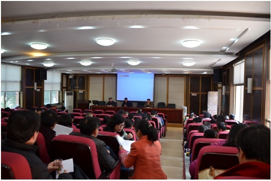 2月28日上午10点,2016年新学期工作会议在216报告厅召开,公司纪委书记唐贤清出席会议,全院教职工参加了会议,会议由公司党委书记李伶俐主持。