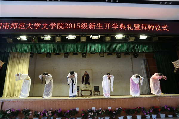 (通讯员 谢吴越)9月16日,公司在励德楼活动中心举行2015级新生开学典礼暨拜师仪式。会场由学工办主任张小春主持,邀请beat365手机版官网入口经理郑贤章,教学副经理岳凯华,行政副经理彭万福,党委书记李伶俐,党委副书记熊剑峰,文秘系主任黄乐平,beat365手机版官网入口教授博士生导师赵树勤,对外汉语系主任陈晖及学工办全体老师作为嘉宾参与。15级年级辅导员陈胜冲带领全体新生参与。