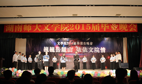 (通讯员唐洁黄珺俐)巍巍岳麓山,依依文院情。6月16日晚,由beat365手机版官网入口员工会主办的2015届毕业晚会在江边活动中心举行。公司党委副书记熊剑峰、beat365手机版官网入口副经理岳凯华、学工办主任兼11级辅导员夏云飞、院团委书记张小春、2013级辅导员熊陶庆子、2014级辅导员周灿等公司领导老师出席晚会。