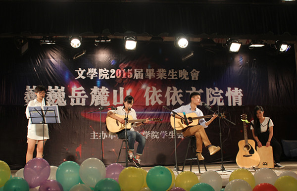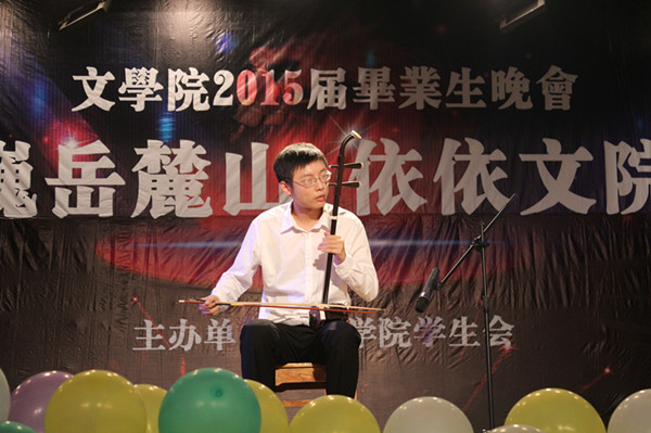 吉他弹唱《无所谓超人》、《公路之歌》中包含原创因素,淡淡的吉他与歌声,配以口风琴和卡洪箱的伴奏,让整个舞台萦绕着纯净的校园气息。《神农架的梆鼓》在穿着民族服饰的同学们地表演下,歌声低沉与高空交织,使大家领略了不同民族的自然与朴素。二胡《三门峡畅想曲》时而明朗轻快,时而激昂飞扬。小品《偶像团》则将晚会氛围彻底点燃。故事讲述了3位风格迥异的待选男演员与一位美丽的女演员在试镜中表演的三段情景剧。出演者们极具表现力的演出成功打造了夸张幽默的舞台,为观众奉上最大的笑声,并与观众热烈互动。男生502寝室现场演唱《十年》,纪念他们即将逝去的美好时光。15届毕业生的年级员工会主席与闺蜜同台圆梦,演唱《一个像夏天一个像秋天》,送给在这个夏天所有舍不得说再见的朋友们,最后她们还表示:“虽然我们毕业了,但我们的友谊不会毕业。”