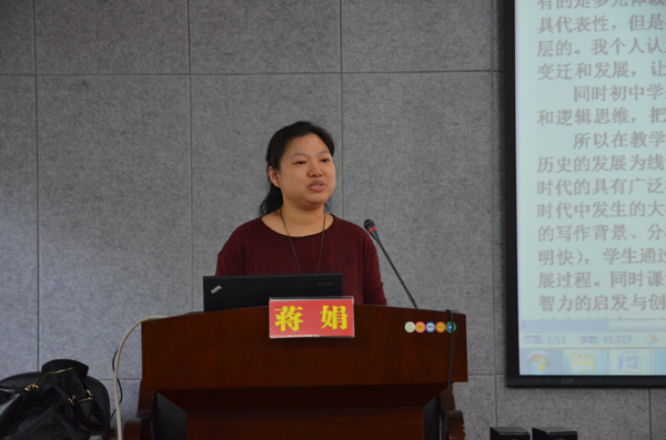 蒋娟首先与在座学员分享自己的教学心得。她指出对于诗歌的课堂教学,教师可以以史为纲,借助课内必修诗歌,补充课外背诵的诗歌,带领员工走进诗歌的殿堂——唐朝。接着,蒋娟开始系统地赏析唐诗。她将唐朝分为初唐、盛唐、中唐、晚唐四个阶段。蒋娟从诗歌作品着手,对每个阶段出现的代表诗人、作品风格以及对后世的影响等方面进行详细解读,同时穿插作品的时代背景,将诗歌与所处时代联系起来。着重指出在教学过程中,诗歌作品可以举一反三,将相似题材的诗歌对比起来教学,这可以发散员工思维,触类旁通。