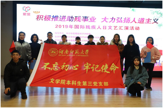 (通讯员易嘉欣卜柯文)11月28日下午,beat365手机版官网入口本科生第三党支部(2017级)于长沙市岳麓区橘子洲街道教工之家参与了“因爱结盟,感恩有你”助残汇演活动。此次义务实践活动旨在以公益汇演的方式将感恩与爱传递给残友们和街道市民。