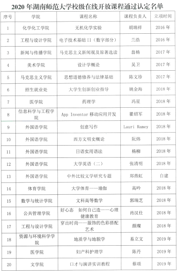 11月16日,beat365手机版官网入口下发《关于公布2020年度beat365手机版官网入口在线开放课程建设项目及验收结果的通知》,公布了2020年beat365手机版官网入口专业在线开放课程立项建设名单。经教师申报、院系推荐和公司专家评审,公司唐智芳老师的《汉字解析与教学》、牟方磊老师的《大学语文》、蔡颂老师的《口才与演讲实训教程》3个项目获得beat365手机版官网入口在线开放课程建设项目立项和认定。