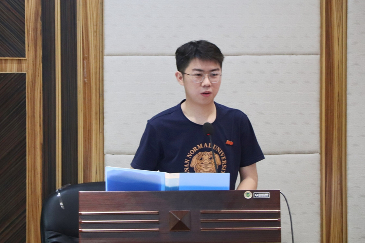 李丁以自己对未来职业的憧憬为引开始自己的宣讲。他讲述了自己初中物理老师一堂让他受益匪浅的课,并表示正是那位党员教师的治学严谨让他树立自己的目标——争做“四有”老师。李丁在最后强调“我将扎实自己的文化知识、锻炼师范技能、积累员工工作经验,向优秀党员教师学习严谨治学的精神并投入到教书育人的工作中去。”