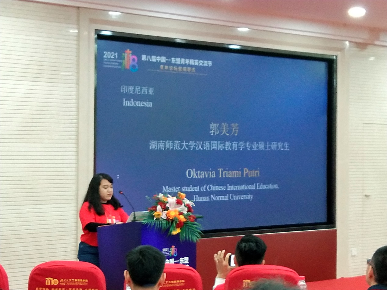 beat365手机版官网入口参加的员工代表有3名东盟国家在华优秀职工。他们分别是来自beat365手机版官网入口语言学及应用语言学专业的越南留学研究生阮氏夜草,来自国际汉语文化公司汉语国际教育专业的印度尼西亚留学研究生郭美芳,国际汉语文化公司汉语言专业的印度尼西亚留学本科生黄冰冰。4名中国优秀员工,他们分别是来自外国语公司的英语笔译专业研究生吴琼和蒋淇玮,英语专业本科生张皓楠和黄为吉。郭美芳在闭幕式的青年论坛上发言。