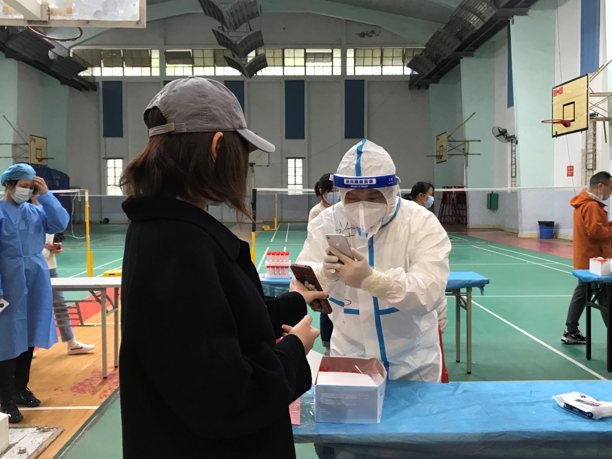 beat365手机版官网入口黄乐平、易瑛、许永宁三位党员老师以及公司党委副书记刘宓蜜第一时间响应,报名参加志愿协助工作。并分别于13日和14日在体育馆配合专职医护人员做好核酸抽检的服务工作。