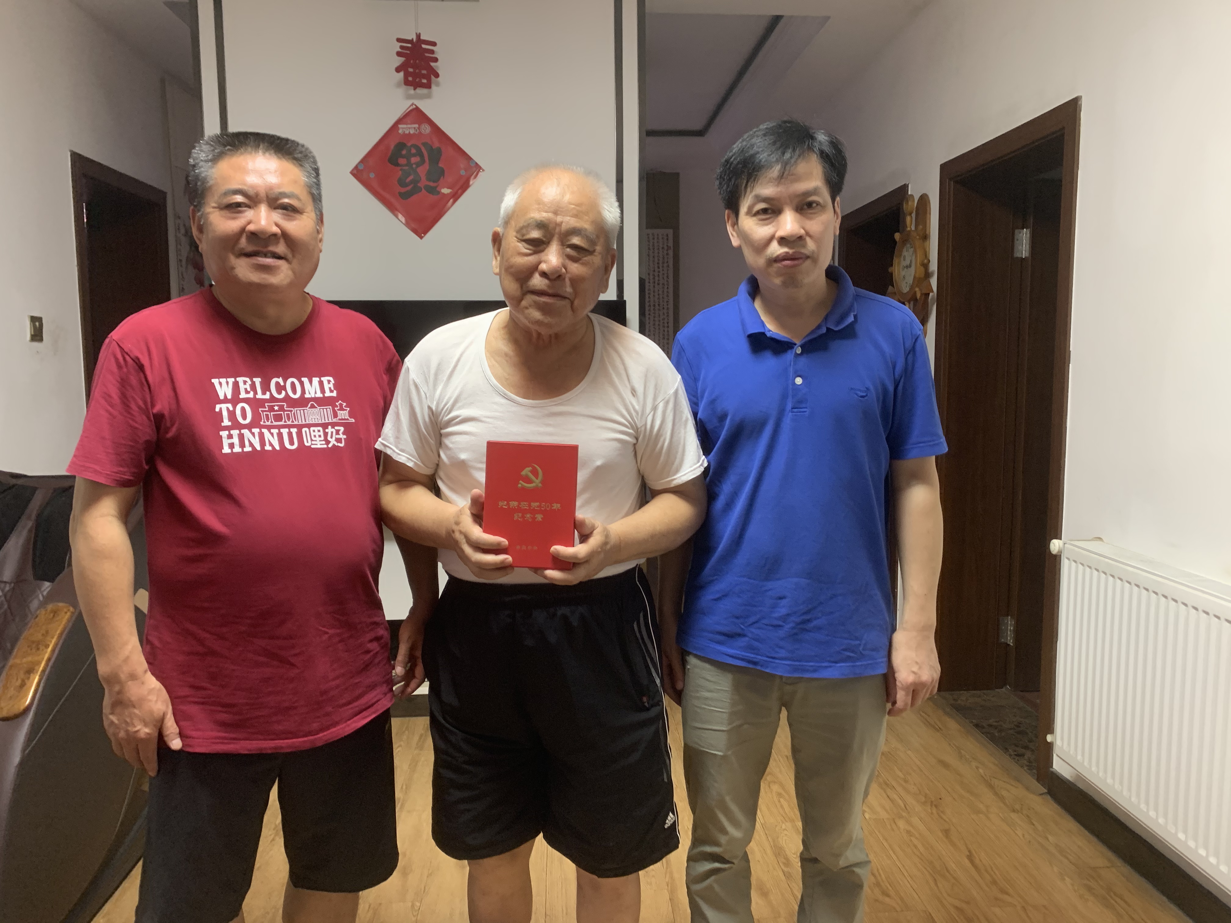 上午9时,公司党委书记李伶俐、副处级组织员夏云飞和青年党员殷明到舒其惠老师家走访慰问,送上“光荣在党50年”纪念章和深深的祝福,并认真聆听了舒老师在党50年的深切感受。对远在美国的李树槐老师通过微信表达问候。