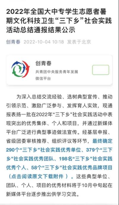 (通讯员 吴文莉 苏静怡)经基层申报、省级团委审核推荐、组织评议等环节,公司国家语言文字推广基地副主任、汉语国际教育系主任陈晖教授荣获2022年全国大中专员工志愿者暑期文化科技卫生“三下乡”社会实践活动优秀个人奖。