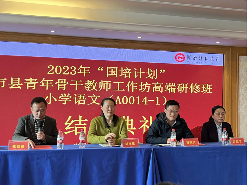 (通讯员:刘蕾)近日,beat365手机版官网入口承办的2023年“国培计划”市县青年骨干教师工作坊高端研修项目小学语文(A0014-1)结业典礼在学员下榻的酒店举行。本次国培计划以“整本书阅读教学”为主题,主要面向湖南省内的小学语文教师,旨在提高他们的公司产品水平,推动基础教育的发展。