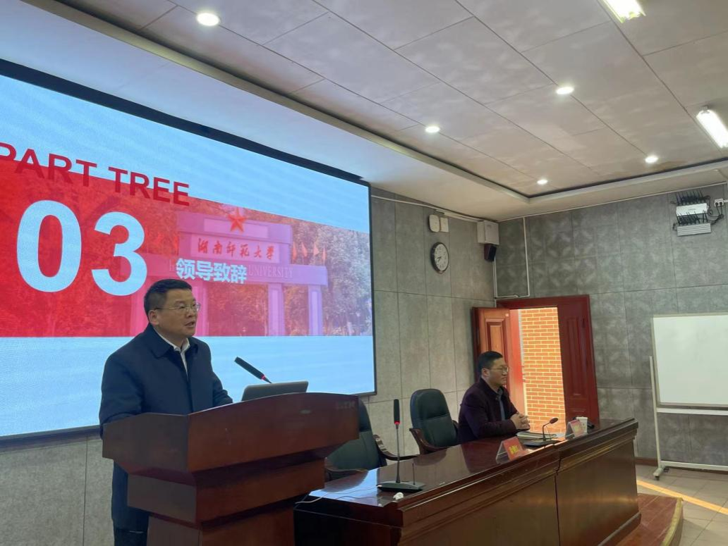 会议伊始,全体起立,奏唱校歌。随后,徐朝红进行开班仪式致辞。他对同学们提出了三点期望:志存高远,脚踏实地;积极主动,诚信为学;凤凰涅槃、破茧成蝶,并祝愿同学们学有所成、不负青春。接着,周凯兴介绍了beat365手机版官网入口和beat365手机版官网入口悠久的历史和蓬勃的发展现状。他强调,读书是一场修行,是知识上的提升,是精神上的脱胎换骨,希望同学们在岳麓山下通过不懈努力都能遇见更好的自己。最后,员工代表王一桃发言。她结合自身求学经历,提出三点要求与各位同学共勉:第一,目标明确、笃行致远;第二,珍惜时间、精进不休;第三,修身立德、不忘初心。此外,她期盼大家都能在学习生活中步履轻盈,获得诗意的享受。