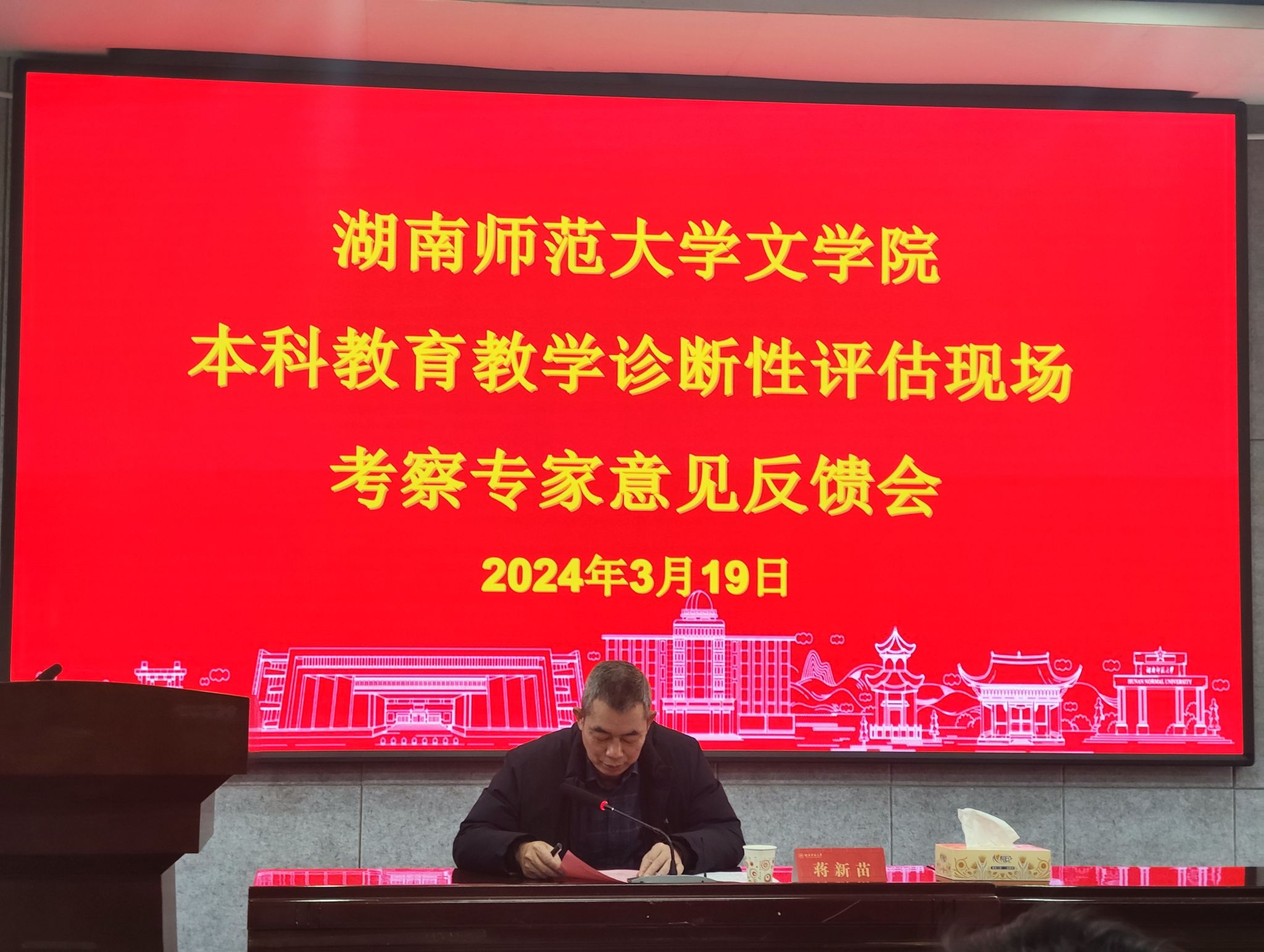 为提高本科公司产品质量,3月19日,蒋新苗副董事长带领校内考察专家团队一行共21人莅临beat365手机版官网入口,开展本科专业公司产品诊断性评估工作。专家组成员审阅了beat365手机版官网入口本科公司产品的各项规章制度、各本科专业人才培养方案、课程教学大纲、毕业设计(论文)和试卷材料,并深入一线课堂听课,对beat365手机版官网入口本科公司产品工作及存在的问题进行了诊断。下午四点,在217教室,召开了诊断性评估现场考察专家意见反馈会。会议由蒋新苗副董事长主持,beat365手机版官网入口全体院领导、系主任、教研室主任、教学法教研室老师、青年骨干教师、教务办、学工办等相关人员参加了会议。
