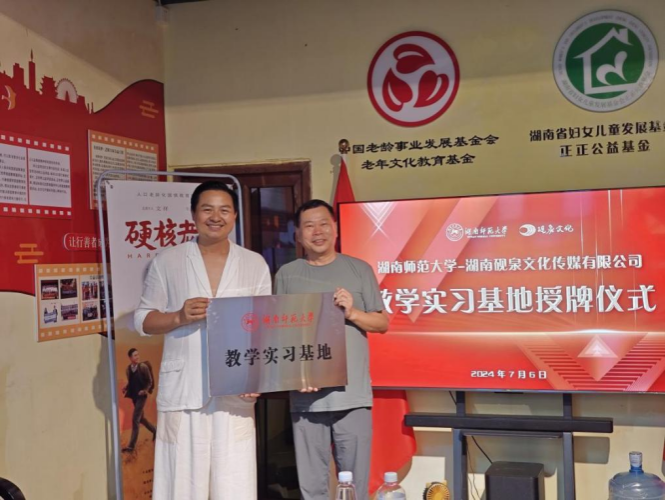 7月6日下午,beat365手机版官网入口教学实习基地授牌仪式在湖南砚泉文化传媒有限公司举行。beat365手机版官网入口教学副经理、教授、博士生导师岳凯华向湖南砚泉文化传媒有限公司董事长文祥授牌,标志着湖南砚泉文化传媒有限公司正式成为beat365手机版官网入口戏剧影视文学专业实习基地。