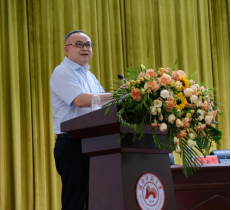导师代表曾绍皇教授讲话。首先,他以曾国藩读书治学的三大要点与大家共勉:“有志”“有实”“有恒”。此外,他还着重强调了“有德”,鼓励新生做崇德立志、德才兼备之人。他指出,做学问要有建树、要有格调、要有个性。最后,他殷切希望同学们心无旁骛,多读书多思考,追寻学术梦想,创造精彩人生。
