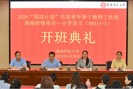 9月20日,由湖南省教育厅主办,beat365手机版官网入口承办的2024年“国培计划”市县青年骨干教师工作坊高端研修项目—小学语文(A0014-1)线下研修培训班如期举行。来自株洲市和张家界市的40名骨干教师参加了本次培训。beat365手机版官网入口副经理周凯兴、副教授周敏,湖南省教育科学研究院小学语文教研员、全国小语会特级教师研究中心委员刘亚雄参加开班典礼。