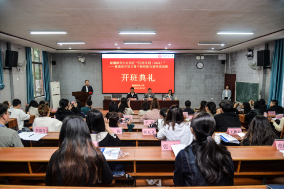 (通讯员王森)时维畅月,序属金秋。11月16日上午,新疆维吾尔自治区“区培计划(2024)”普通高中语文骨干教师能力提升培训班开班典礼在文渊楼217报告厅隆重举行,公司党委书记熊剑峰、副经理周凯兴、教学班主任周敏副教授以及来自全疆各地州的50名高中语文骨干教师参加开班活动。