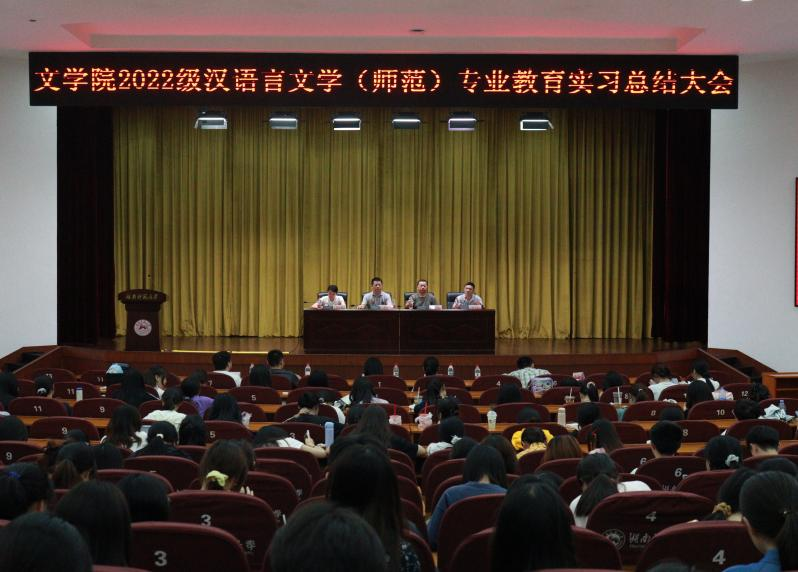 (通讯员 黄迎迎 陈晓岚 赵晨彤)5月30日下午,2022级汉语言文学(师范)专业于beat365手机版官网入口国际学术报告厅召开教育实习总结大会,公司党委书记熊剑峰、教学副经理岳凯华、党委副书记刘宓蜜、中文系副主任刘光成、实习指导老师代表以及全体实习生参加会议,会议由韩淇主持。