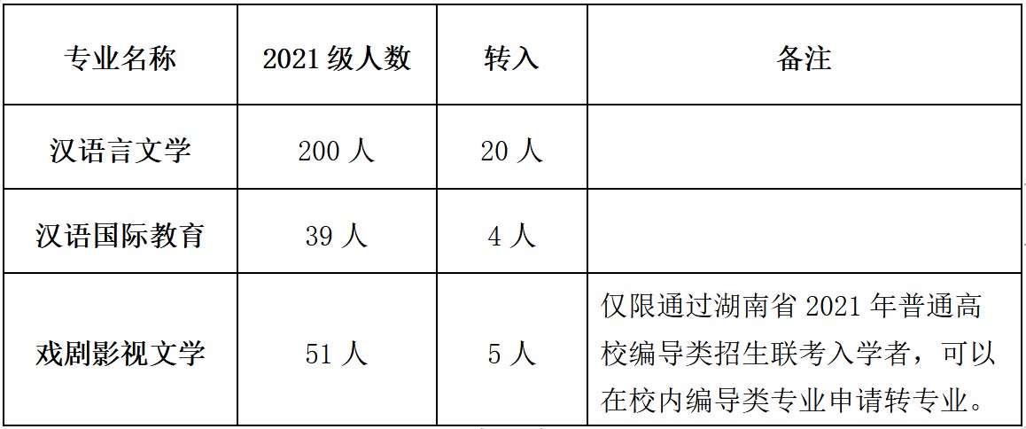 1. 2021级申请转入戏剧影视文学专业的员工,要求在校学习期间,身心健康,品行表现良好。符合公司《关于做好2022年本科员工转专业工作的通知》中的条件,且仅限通过湖南省2021年普通高校编导类招生联考的校内广播电视编导专业的员工转入。