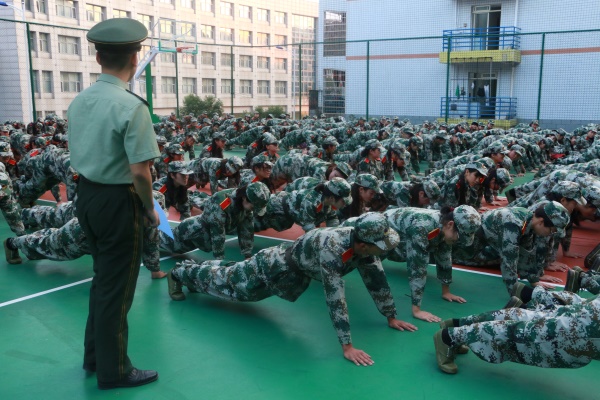 16级员工身着迷彩服,红色肩章与绿色军装鲜艳动人,引得家长及其他员工驻足观看。总教官钟国帅整队集合之后,就集合迟到之事罚做俯卧撑,并警示16级要按时集合,不拖拖拉拉,禁止迟到。惩罚之后,各班教官郭盖曾雄、刘特尧、李长泽、曹明玉、窦兆鹏、童禹谋,旦增欧珠依次进行自我介绍。初步认识之后,教官各自带队分开训练。一时,答到声在篮球场中此起彼伏。教官也开始按高矮顺序为各班安排操练队列,并叮嘱员工服饰、头发、纪律等军训要求。教官特别强调,希望2016级新生可以认真对待军训,严格要求自己,为beat365手机版官网入口的荣誉而战斗。