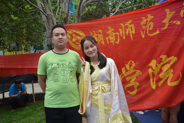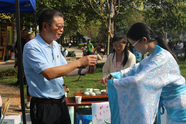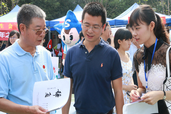 集团领导来到现场视察迎新工作,慰问各单位迎新工作人员,看望新生和家长,并与家长新生一起参与创意迎新活动,观看汉服表演、翻看beat365手机版官网入口迎新专刊《号角》、共同品尝鹿鸣茶艺社所沏的毛尖、龙井。