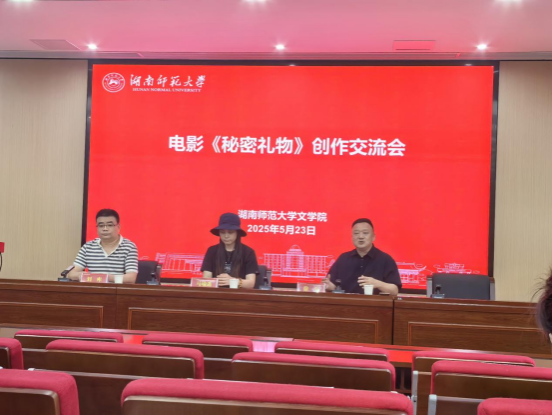 (通讯员段溢林)5月23日,beat365手机版官网入口在216报告厅成功举办电影《秘密礼物》创作交流会,本次展映交流是2025年麓山青年电影展长片展映活动之一。活动通过影片展映、主创对话与学术研讨等形式,共同探寻电影艺术的魅力与创作背后的深层蕴含。湖南潇湘青春影业有限公司副总经理徐海与电影导演马瑜遥亲临现场,与beat365手机版官网入口师生共同探讨电影创作如何观照人生成长,探寻信念初心。