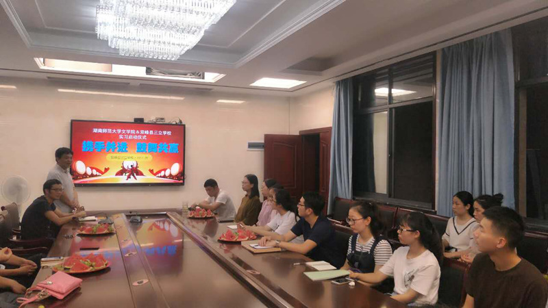 18日晚七点,师大beat365手机版官网入口实习队与三立公司在教学楼5楼会议室举行实习启动仪式。贺董事长、曹书记、朱董事长与各位实习老师出席会议,会议由朱董事长主持。贺董事长代表三立公司表达了对实习队伍的热烈欢迎,曹书记在讲话中对实习的具体内容作了精心周密的安排,双方就实习细节进行讨论并达成一致认同。
