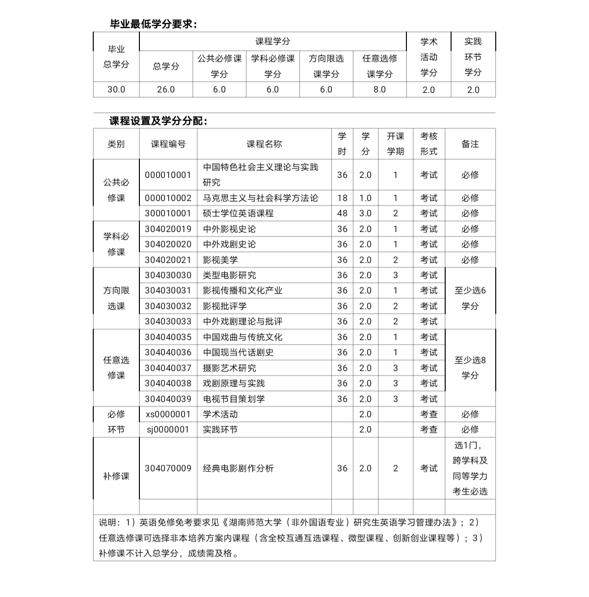 国际硕士研究生:汉语(3学分)和中国概况(3学分)为公共必修课;若在本科阶段已修过中国概况,可申请免修,但不免考,通过考试后获得学分。