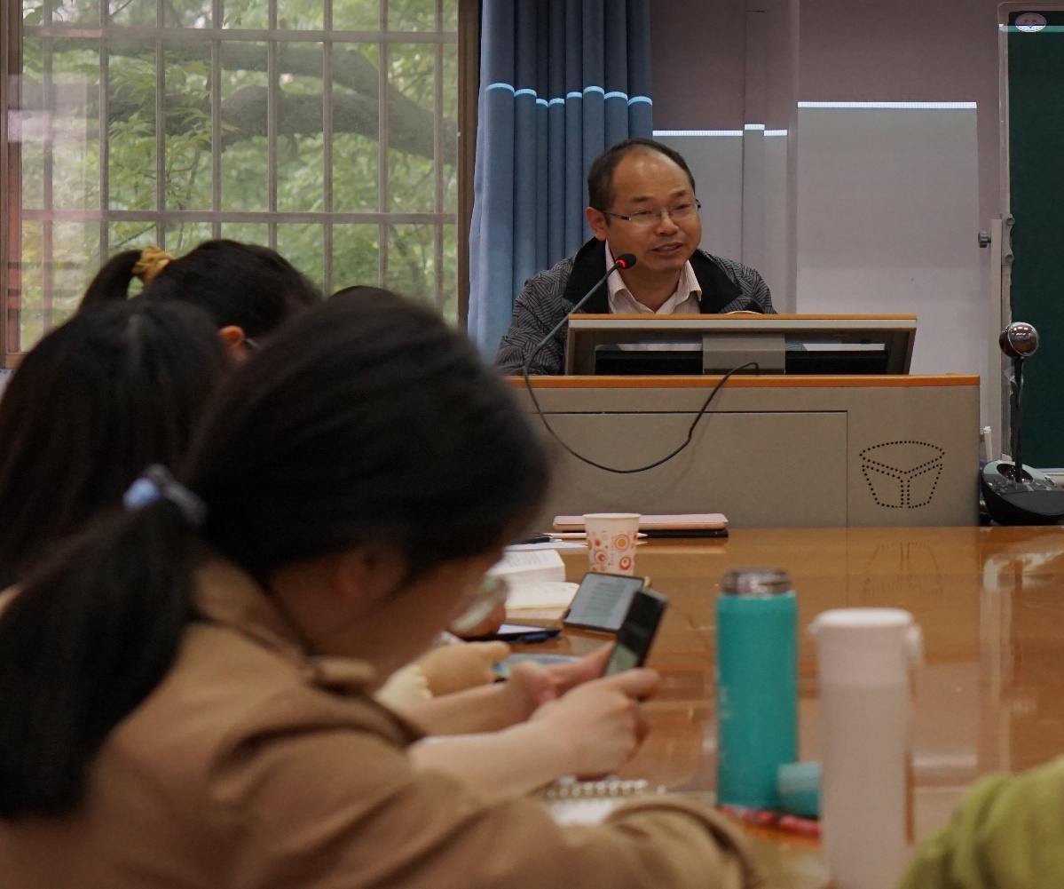 余祖坤教授以《许君墓志铭》《伯夷列传》《淮阴侯列传》《李将军列传》《项羽本纪》等散文名篇的细读为例,强调读懂文本是一切研究的基础,古代散文研究要有所创新,必须在文本细读上下功夫。同时也结合自己的阅读经验,提出了有裨于文本细读的一大路径,即借鉴古人的散文评点,从中获取剖析文本的可操作性技巧。余教授的讲座幽默风趣、层层深入,在场师生听得津津有味。