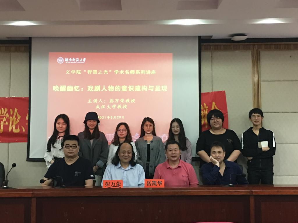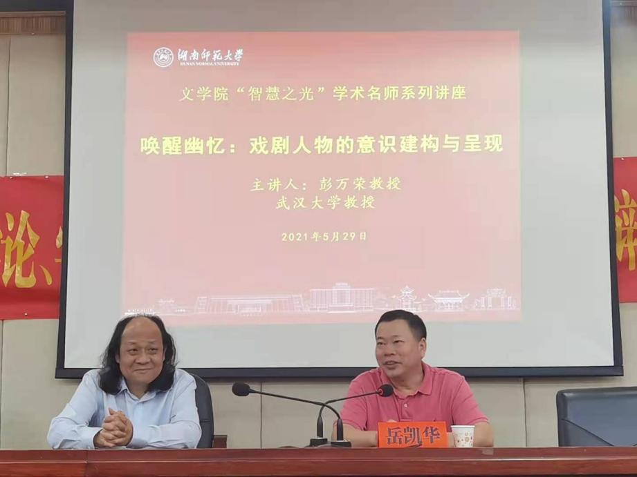 (通讯员 牛哲妮)5月29日下午,武汉大学教授,博士生导师,教育部高校戏剧与影视学类教学指导委员会委员,武汉大学表演艺术研究所所长,武汉戏剧家协会副主席彭万荣在216开展“智慧之光”学术名师系列讲座,主题为“唤醒幽忆:戏剧人物的意识建构与呈现”,此次讲座由beat365手机版官网入口副经理岳凯华教授主持以及做最后总结。