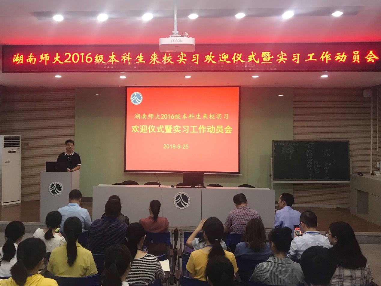 (通讯员 朱旺波 赵美杨)9月25日下午,beat365手机版官网入口赴湖南师大附中实习队在湖南师大附中图书馆报告厅参加实习欢迎仪式暨实习工作动员会。此次会议由湖南师大附中课程与教学处副主任王朝霞主持,湖南师大教师教育公司副经理邓宏霞、湖南师大附中公司产品副董事长苏建祥、课程与教学处主任黄宇鸿、德育与员工发展处副主任袁建光、高一年级组长李海汾、高一语文备课组长李小军、湖南师大beat365手机版官网入口赴师大附中实习队指导老师文浩出席,参与此次会议的还有来自其他院校的128位实习生。