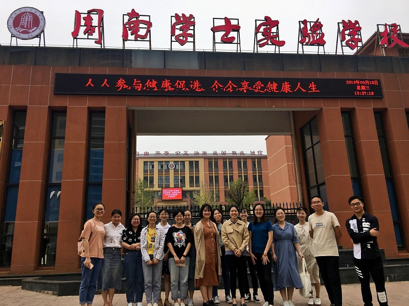 会后,实习队参观了课后书吧、备课室、教室和食堂,熟悉环境,并在校门口合影留念。