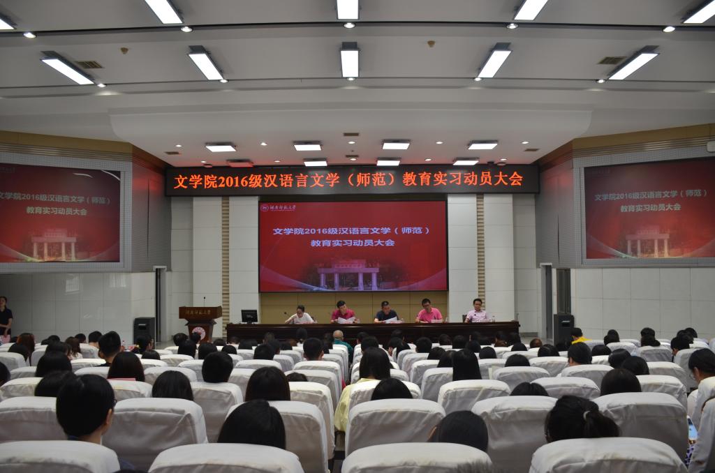 (通讯员 邓煦婷 蔡亚轩)9月5日上午,2016级汉语言文学(师范)教育实习动员大会于至善讲堂顺利召开。此次大会由beat365手机版官网入口学工办主任周灿主持,公司党委书记李伶俐、公司党委副书记熊剑峰、实习领导小组组长张良田、中文系主任吕双伟到场并讲话,教务办主任李青、16支队伍的指导老师及280余名同学共同参加了此次大会。