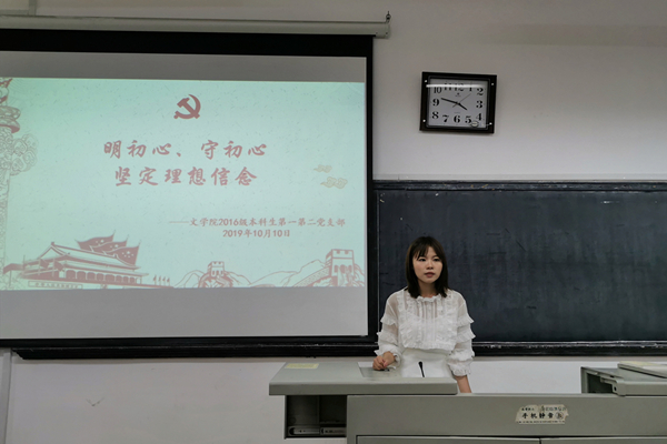 (通讯员陈盈庆)10月10日下午,2016级本科生党支部在beat365手机版官网入口311教室开展“明初心、守初心、坚定理想信念”党日活动。此次活动由2016级本科生党支部宣传委员陈盈庆主持,2016级本科生辅导员周子杨以及党支部32位成员参加活动。